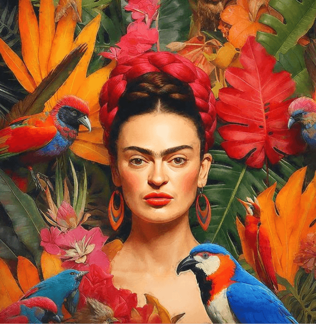 Style: Known for her surrealist and symbolic style, her work often includes elements of Mexican folk art and indigenous culture.